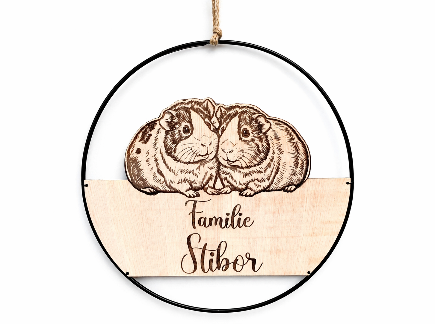 Verleihen Sie Ihrem Zuhause eine ganz persönliche Note! Dieses Türschild aus Sperrolz mit stilvollem Metallring ist nicht nur ein echter Hingucker, sondern auch ein liebevolles Statement für alle Meerschweinchen-Fans.